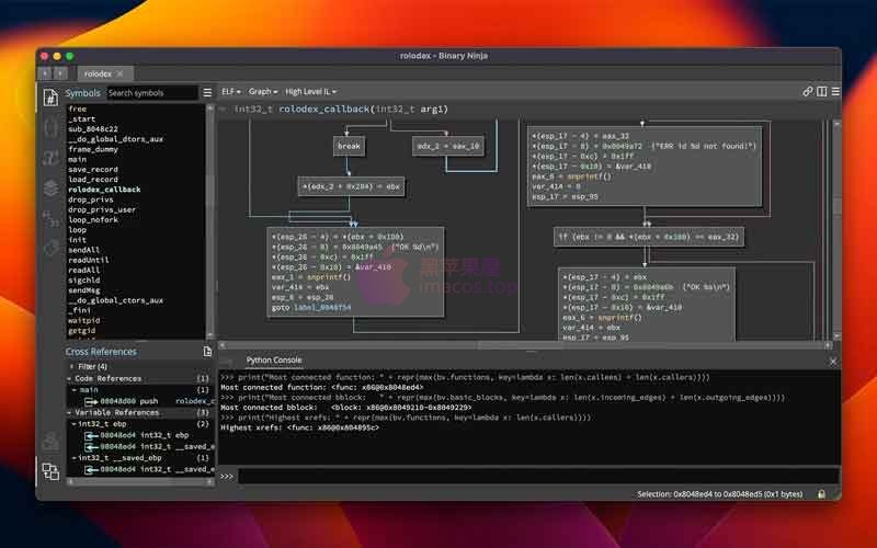 无头运行 - 无需仅在 Binary Ninja 内部进行分析。相反,将 Binary Ninja 添加到您的分析环境中。使用您选择的 python repl 甚至将我们的核心分析库静态编译到您现有的框架中,我们的分析可以完全与 UI 分离。