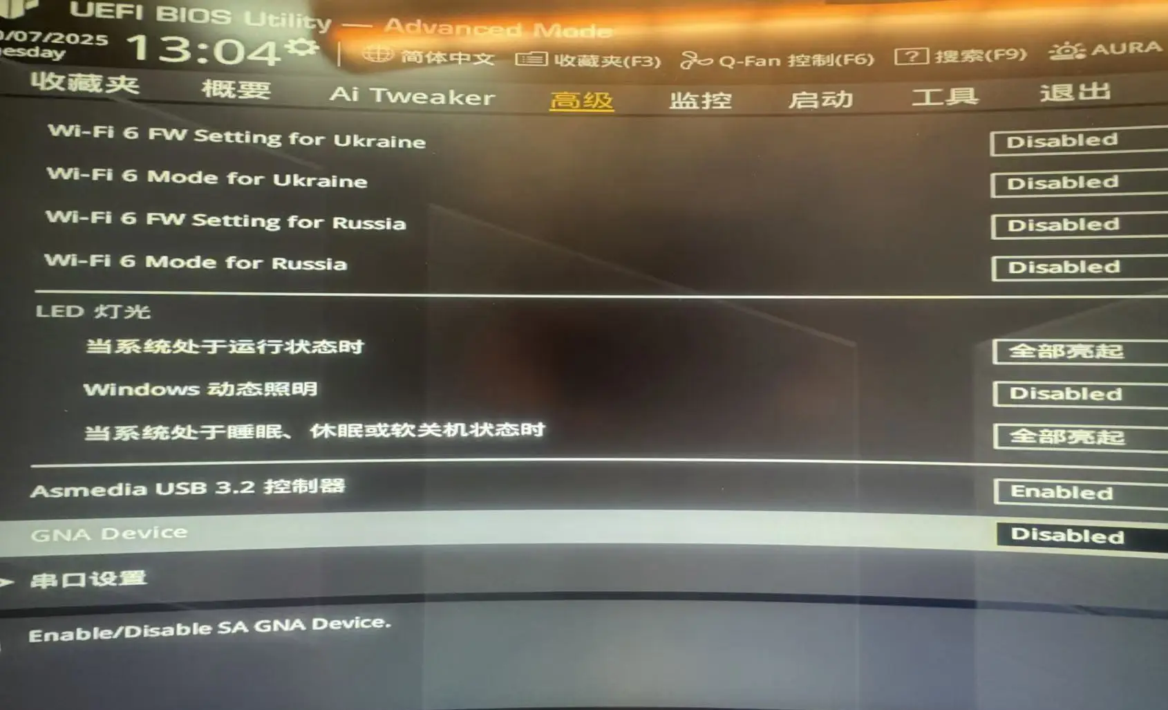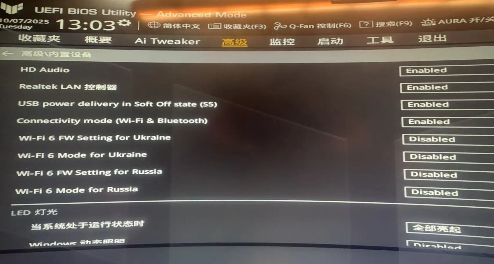 内置声卡和网卡打开,usb power可以开,WI-FI和蓝牙可以开