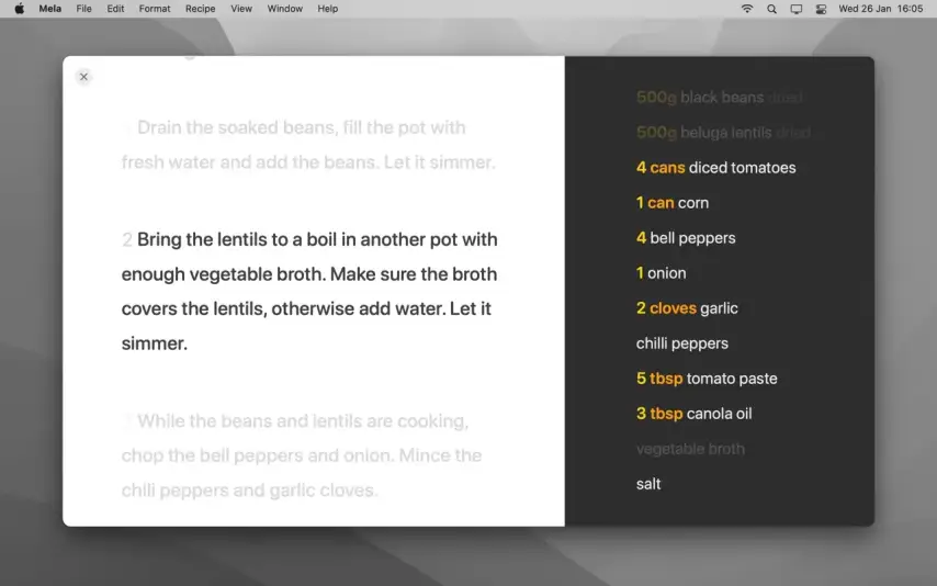Mela 是一款简单、优雅、现代的食谱管理器,可与 iCloud 同步。