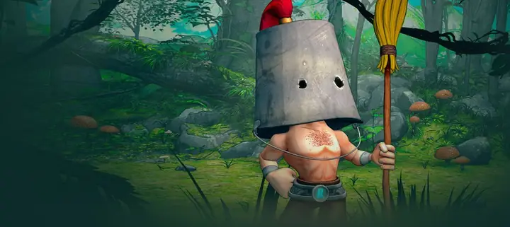 《笨拙英雄》讲述了一个名叫鲁弗斯的笨拙又滑稽的男孩的冒险故事,他与心爱的妻子布伦希尔达生活在一起。游戏的设定很简单:有一天,一个恶棍绑架了主角的妻子,把她锁在自己的城堡里,并把她变成了一个典型的、喜欢嘟嘴自拍的社交媒体女孩。之后,这个农夫干脆头上套个桶,拿起扫帚,踏上了营救妻子的征程。