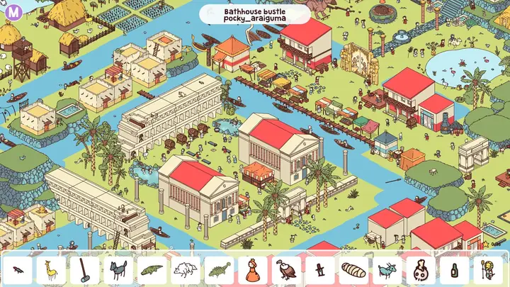俯瞰整个区域,例如点击一栋房子,即可“扫描”它,查看里面有什么。由于物品可能隐藏在建筑物内,因此这一步骤至关重要!任务的每个关卡都会难度增加,周围的元素也会变得更加复杂。最终,你将到达一个地图上会出现数十个角色围绕着篝火奔跑、众多动物来回移动以及其他一些小物件的场景。在这片混乱之中,你需要找到隐藏物品来解锁下一关。