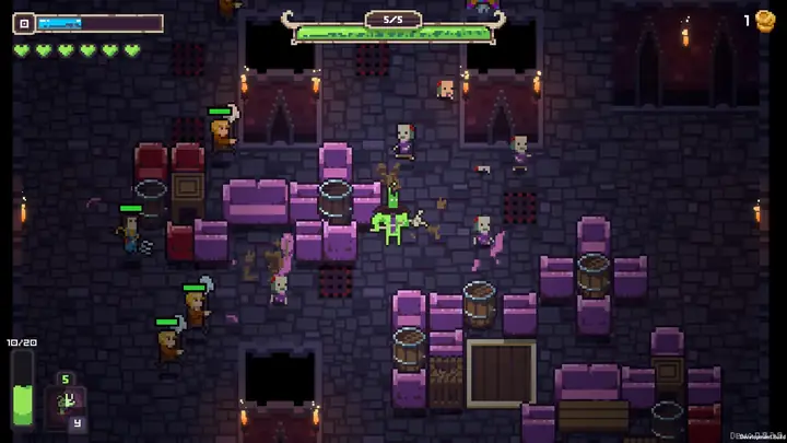 冲过人群,击败众多首领。利用宝石中隐藏的力量来强化和完善你的跳跃技巧。尝试不同的宝石组合,发现新的强力配方,消灭地牢里的醉汉。