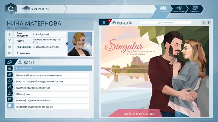 老大哥来了——现在轮到你了。调查公民的生活,找出一系列恐怖袭击的幕后黑手。网络信息、私人短信、文件——一切尽在你的掌握。但务必小心,你提供的任何信息都将带来后果。