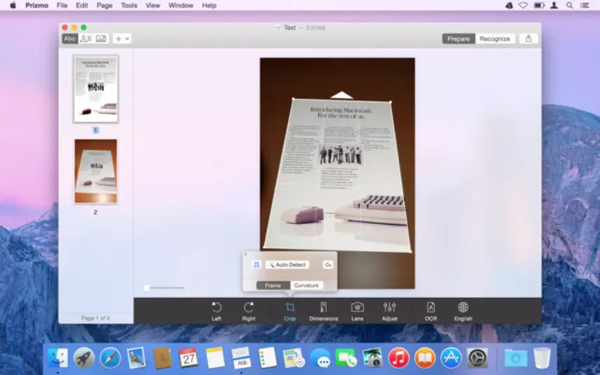 校正透视、调整图像、进行畸变校正以避免识别错误,并在几秒钟内平滑照片。有了这款适用于 Mac 的最佳扫描应用程序,您无需拍摄完美的照片或扫描件。只需在导入后进行处理即可。