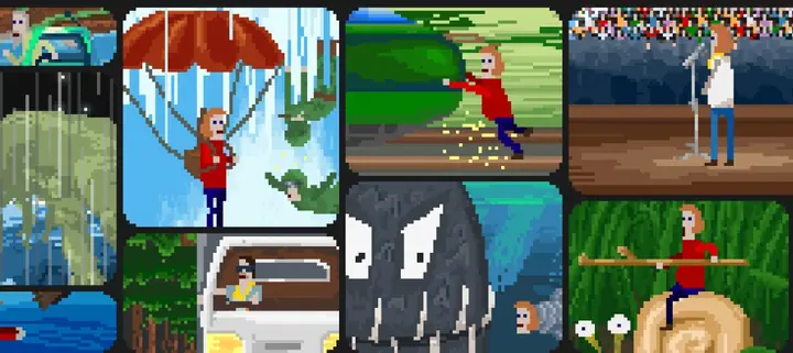 有时,典型的冒险之旅会被一些出乎意料的迷你游戏打断。这里应有尽有:竞速、枪战、格斗、体育竞技,甚至还有第一人称射击平台游戏!McPixel 的世界中散落着超过 20 个这样的迷你游戏!