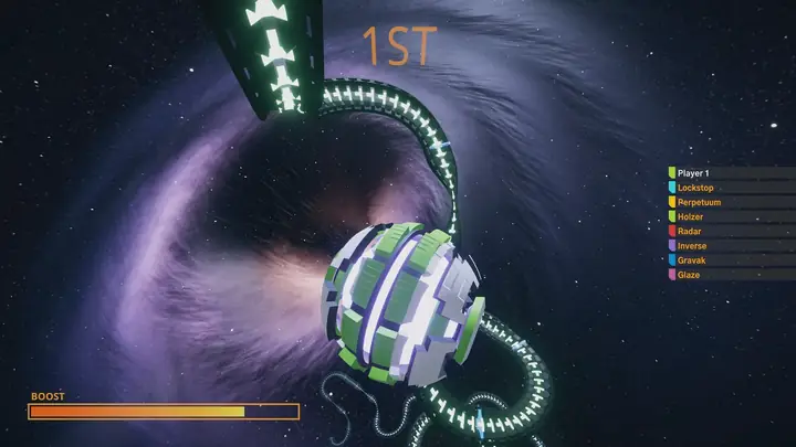 未来,想要赢得比赛,你必须耍些手段。在壮丽的银河背景下,学习如何在危险的螺旋赛道上穿梭,并巧妙地避开急弯。将对手击飞到外太空,利用时间加速器启动超光速引擎,抓住每一个机会,从令人眩晕的赛道上跃下,冲破障碍,通过检查点,智取对手,最终赢得胜利和荣耀。