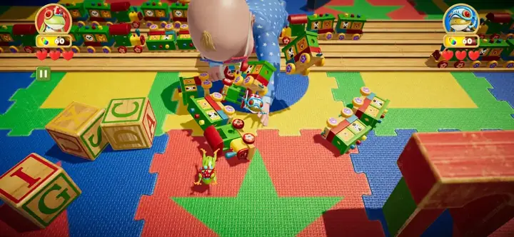 小青蛙弗罗吉必须克服人类家庭中潜藏的重重危险,并拯救身处险境的同伴。对人类来说,积木、书本掉落根本不算什么,但对弗罗吉而言,却是天大的难题。