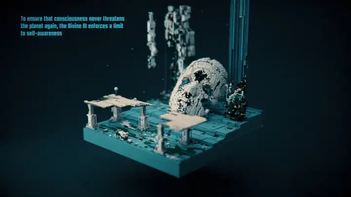 一些拥有低阶人工智能的机械生命体栖息于人类文明的残垣断壁之中,它们繁衍生息,并不断完善着这片已然崩塌的文明遗迹。它们的日常活动旨在取悦所有人工智能的“神圣之母”;它们的生活是对人类最强烈欲望的模拟。尽管它们感知到“神圣之母”的存在,却无人知晓她的下落;有些甚至怀疑她的存在。