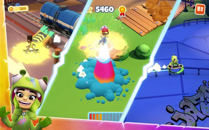 收集最新的地铁跑酷道具,提升你的得分倍率,创造新的纪录。收集并使用星币来升级你的队伍。完成任务集,在以后的比赛中提升你的得分倍率。