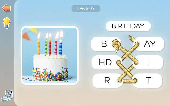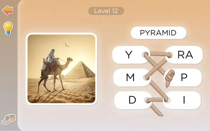 每个关卡都包含一张图片和一组打乱的字母。你的任务是找出与图片相关的单词,并将它们组合起来。