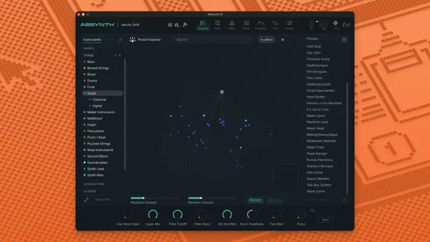 自 2002 年问世以来,Absynth 就被誉为市场上功能最全面、最强大的软合成器之一。Native Instruments 的这款半模块化合成器功能强大,拥有可自定义波形的振荡器、可定义的多点包络、强大的调制功能,以及一些你可能从未听过的独特音色。