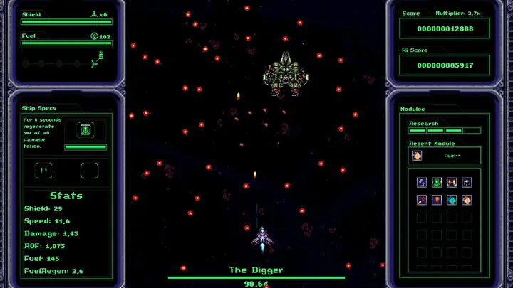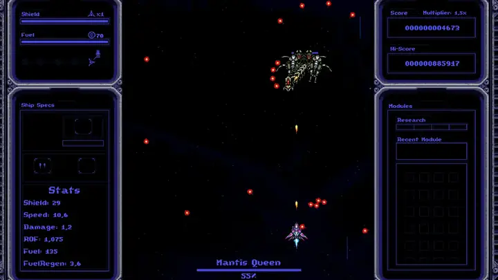 《BroodStar》是一款融合了Roguelike元素的经典街机射击游戏。但务必小心……浩瀚的宇宙中隐藏着无数强大的敌人。一旦失败,你将不得不重头再来——唯一能带走的,是你在之前游戏中收集到的升级模块,这些模块以研究点数的形式存在,可以强化你的飞船。它们是否足以让你战胜成群的未知生物和可怕的Boss,最终完成征服活体星球——BroodStar的使命?