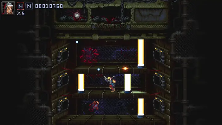《铁肉》致敬了经典的横版射击游戏,其中包含多阶段的激烈 Boss 战。游戏提供三种难度级别,玩家可以挑战自我,更高的难度级别将带来更具挑战性的 Boss 战。