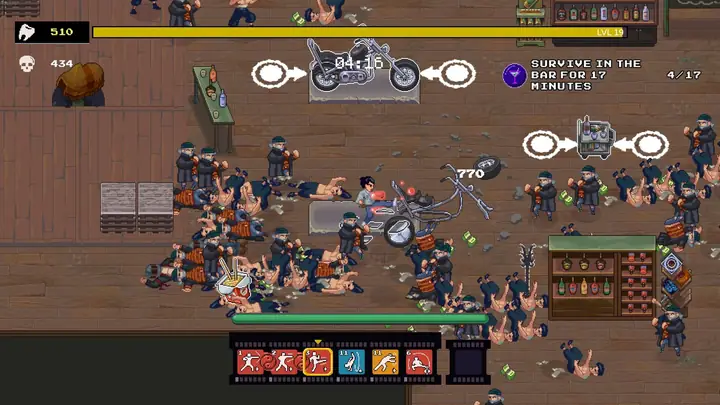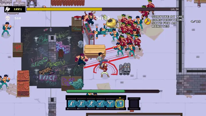 在这款受80年代动作电影启发、惊险刺激的生存类roguelite游戏中,体验真正的武术精髓。利用环境和自制武器,掌握新的招式,创造威力强大的连击,击退残暴的暴徒和匪帮!《空手道幸存者》提供紧张刺激的街头格斗,在这里,随机应变和创造力是生存的关键。