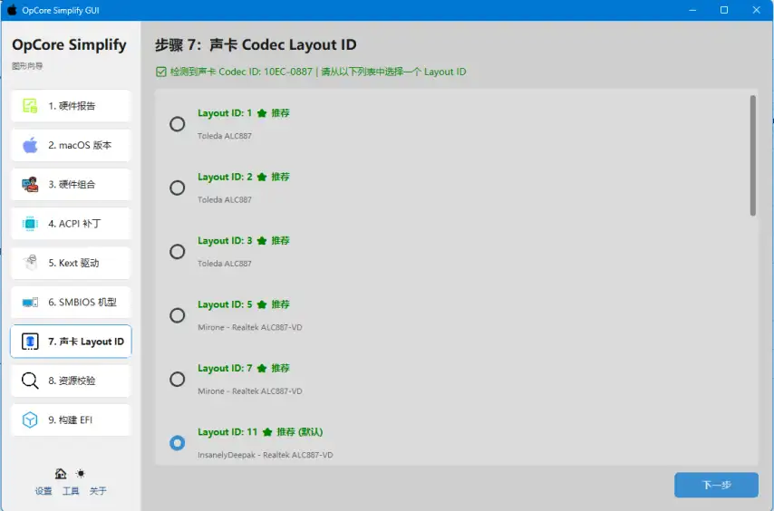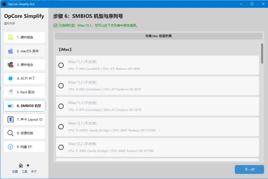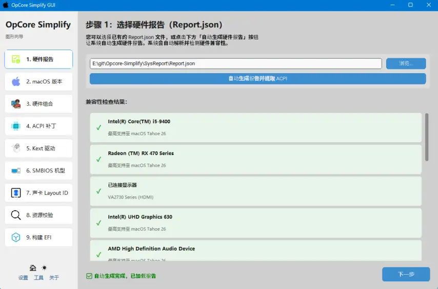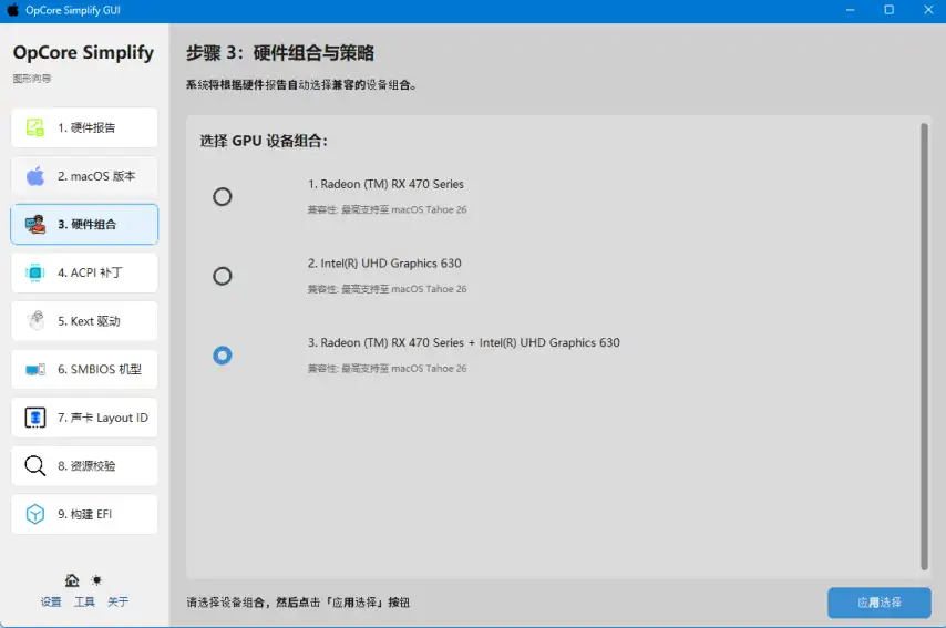 集成主流 Hackintosh 经验与实测技巧,自动定制 EFI 配置:- 自动伪装部分AMD显卡ID,使macOS识别。