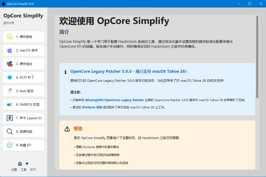 OpCore-Simplify是一款通过自动化基本的设置流程并提供标准化的配置来简化OpenCore的EFI配置生成工具,通过标准化设置流程、自动硬件检测与补丁,大大简化EFI制作与维护,降低上手难度,提升安装成功率。