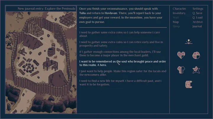 《路卫》是一款文字冒险游戏,讲述了一位路卫在像素插画背景下守护家园的故事。玩家将沉浸于一个奇幻世界的角色扮演冒险之中。主角负责护送独自旅行的旅人,带领他们探索世界的荒野。玩家会遇到形形色色的角色,并从强盗和居住在偏僻村庄附近的危险生物手中拯救他们。
