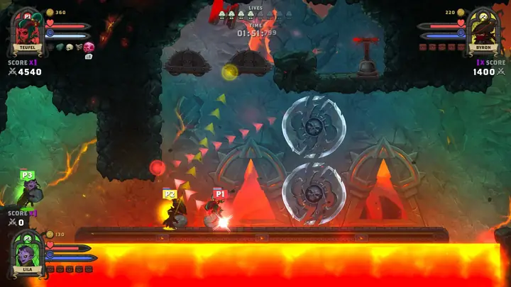- 你可以使用临时物品作为武器:骷髅头、大脑、恶魔、女巫,甚至是鸡,你可以将它们投掷向敌人。