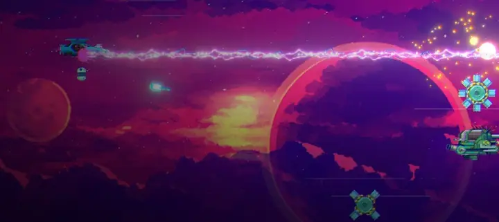 20 种武器、37 种强化道具、13 个强大的机器人、8 种强化道具组合,以及弯曲空间的独特能力——黑色悖论。