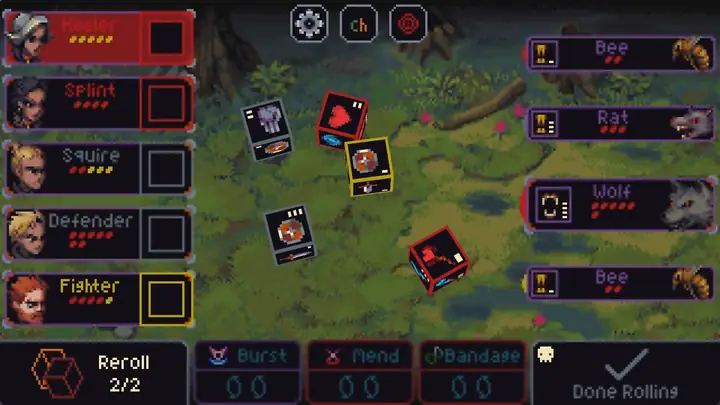 操控5位英雄,每位英雄都拥有独特的骰子。闯过20个怪物关卡,挑战最终Boss。如果输掉哪怕一场战斗,你都得从头再来,所以务必小心谨慎,祝你好运!