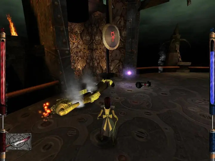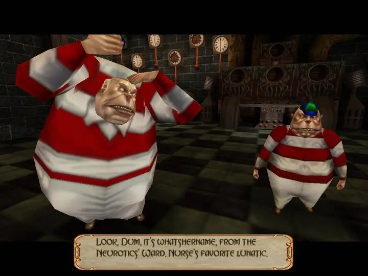 该游戏采用 id Tech 3(Quake III)引擎打造,在 2000 年提供了流畅的游戏体验和令人印象深刻的画面。玩家控制爱丽丝,她使用各种奇幻的“玩具”作为武器(例如沃帕尔之刃、冰杖或卡牌)与敌人战斗、解谜和通过平台跳跃关卡。