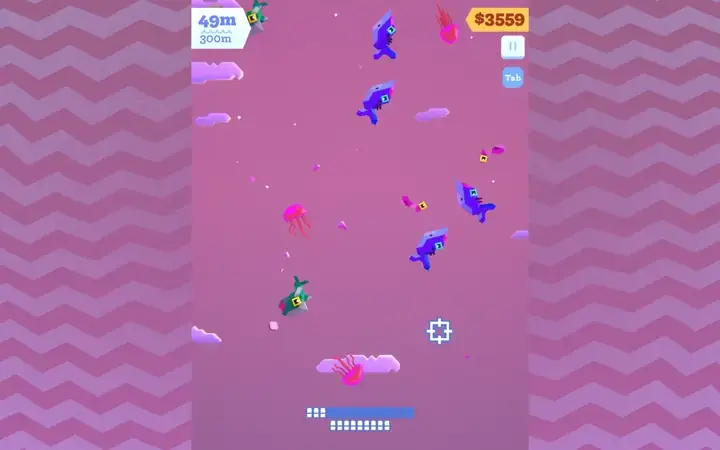 基于 Vlambeer 2013 年的热门游戏,Vlambeer(Super Crate Box、Nuclear Throne)、Zach Gage(SpellTower、Knotwords、Good Sudoku、Really Bad Chess、Card of Darkness)和 Greg Wohlwend(Threes、Hundreds、TumbleSeed)花了两年时间精心重制了 Ridiculous Fishing,并用 KO_OP(GNOG、Winding Worlds)对其进行了改造。