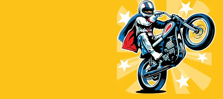 跟随他精彩的职业生涯,从一辆不起眼的 250cc 越野摩托车开始,飞跃响尾蛇和狮子。一路晋升,最终驾驶 750cc 终极摩托车,疯狂飞跃 13 辆伦敦巴士和拉斯维加斯赌场喷泉!