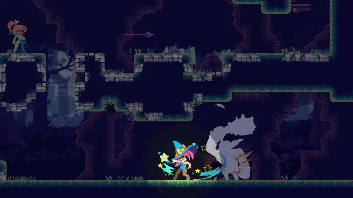 这款游戏融合了快节奏的复古游戏玩法和轻松幽默的基调,灵感来源于《Shantae》和《Momodora》等经典作品,但更侧重于充满魔法和不寻常互动的奇幻世界。