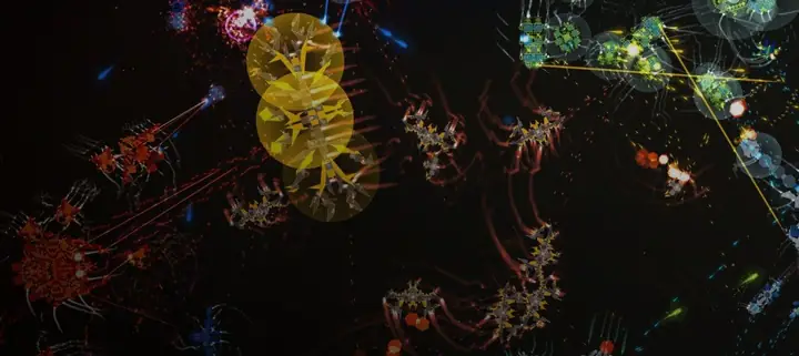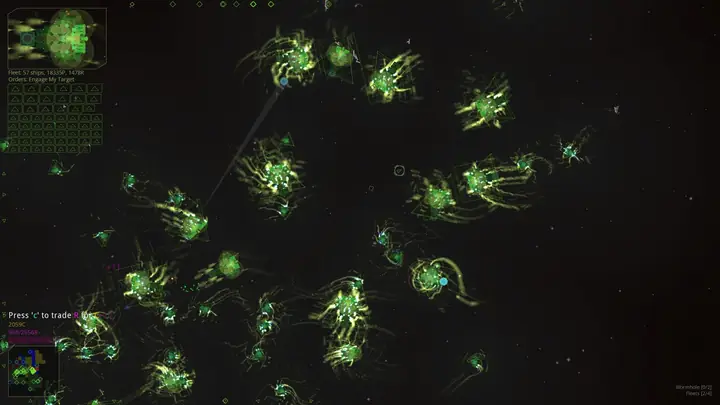 然后你会再次成长。一次又一次。现在你拥有了一艘可以组建自己舰队的巨型战舰,而这支舰队中的每艘战舰又可以组建自己的舰队。你绝对需要它。你的敌人不断变化着形态、大小和力量——那些经过数千场战斗经验打造和锤炼的战舰,从创造者的电脑中涌入你的世界,带着世间所有的怜悯,或者换句话说,毫不留情地跃入你的宇宙。