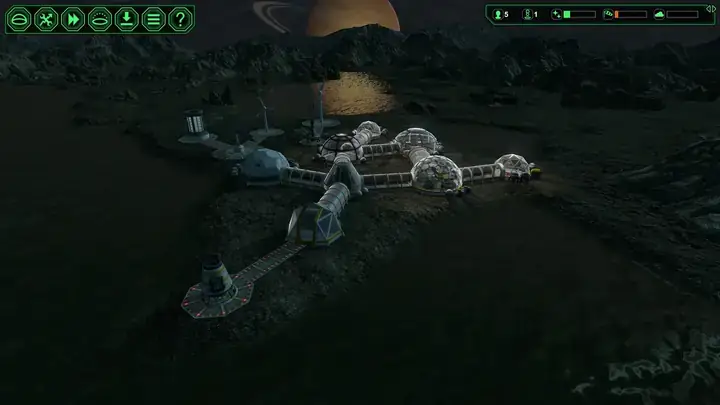 你扮演基地的建筑师和管理者,指挥殖民者建造生存所需的各种设施。你必须时刻监控氧气、水和食物的生产,否则殖民者将会死亡。