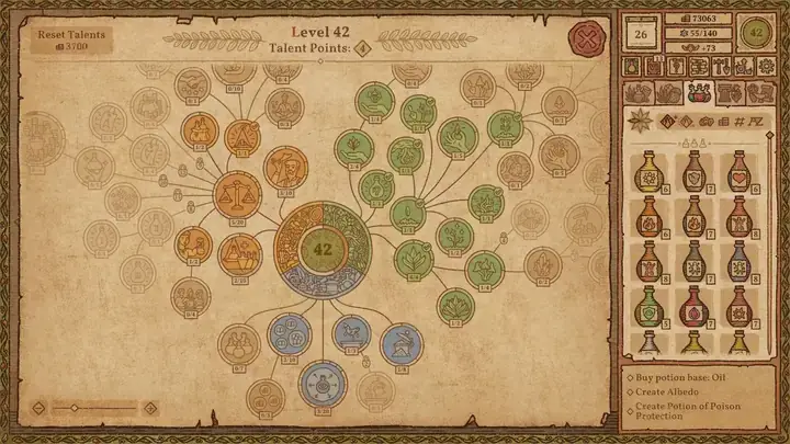利用炼金地图仔细规划路线,你就能炼制出具有不同效果组合的药剂。但记住,常识至关重要:不太可能有人会买有毒的治疗药剂……对吧?或者真的会有人买吗?