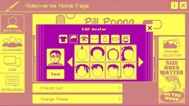 邂逅众多角色,探索无数支线故事,欣赏像素艺术,揭开动荡的社交游戏网络背后的真相!选择头像、个性化语录和您最喜欢的主题,打造专属的Videoverse体验。