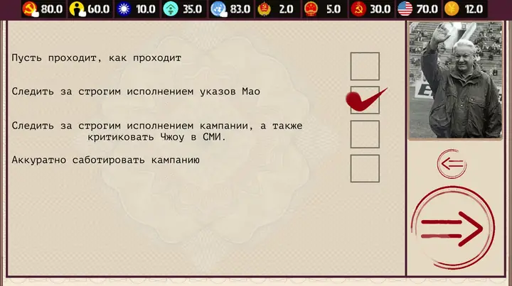 。记住,你的行动将决定 20 世纪末世界会是什么样子——苏联会解体吗?朝鲜会沦为被国际社会孤立的国家吗?社会主义阵营会瓦解吗?你会重现中国的辉煌道路吗?或者你能做得更好吗?