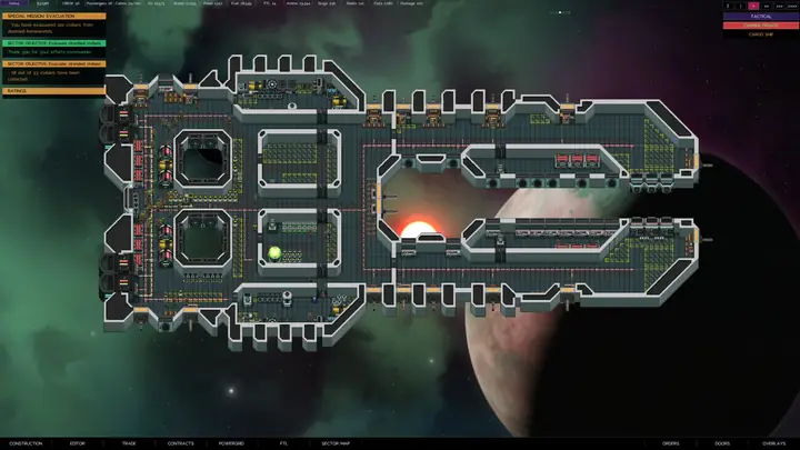 在你的船员等待你的命令时,是时候建造飞船了。无论你选择预先建造的舰队还是建造自己的舰队,都需要利用当地的补给站来获取所需的一切。首先建造一个反应堆来为引擎提供动力,然后布置飞船的管道和电气系统以确保最佳动力输出,并管理生命维持系统和其他全舰系统。如果没有充足的氧气供应和二氧化碳吸收器,你的船员们将无法生存太久……