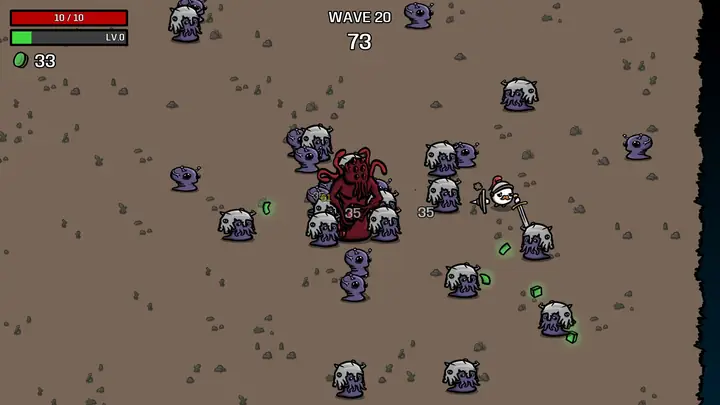 《土豆兄弟》(Brotato)是一款融合了Roguelike元素的竞技场射击游戏,玩家将扮演一个武装土豆,对抗成群的外星人。装备最多六种武器,选择特性和物品,制定战术,并努力生存到援军到来。