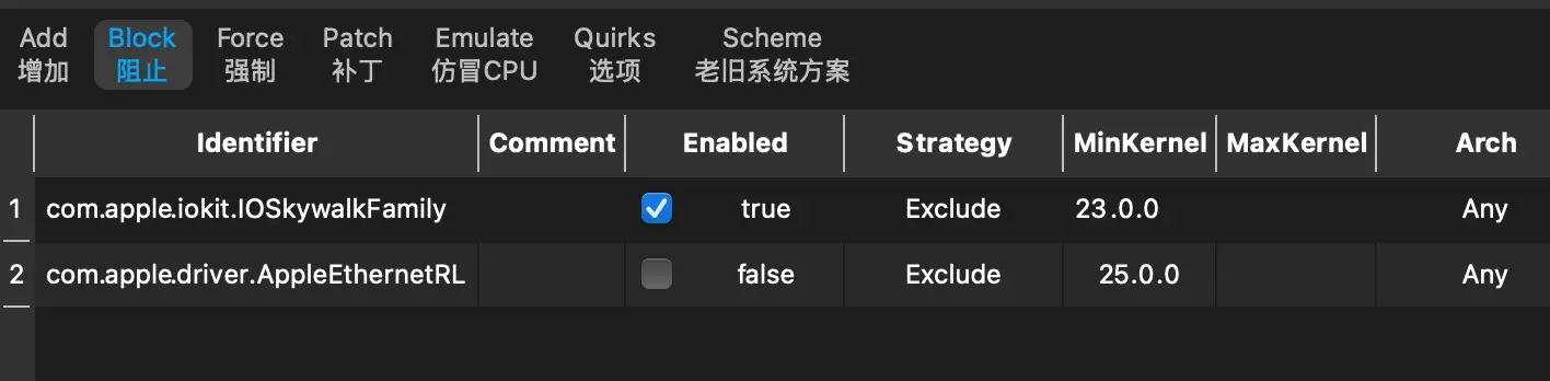 ②如果你是RTL8125网卡,请额外添加com.apple.driver.AppleEthernetRL 策略Exclude