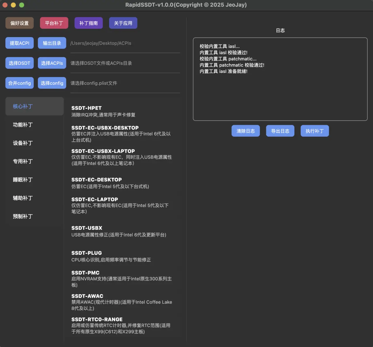 旨在简化黑苹果(Hackintosh)环境下 SSDT / DSDT 补丁的生成与定制,降低 ACPI 定制门槛。