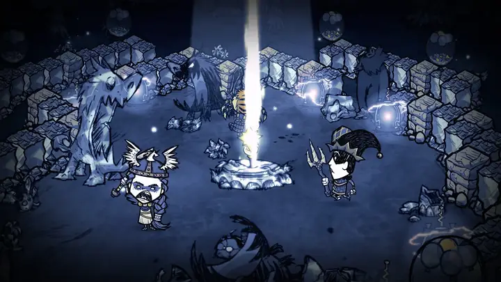 《饥荒联机版》(Don't Starve Together)是独立游戏《饥荒》(Don't Starve)的独立扩展包,在一个黑暗且对玩家并不友好的世界中提供合作生存体验。你可以与好友组队,也可以选择随机匹配一位在线伙伴。游戏玩法并不强制合作——你可以在共享地图上选择携手共进,也可以各自追求自己的目标。
