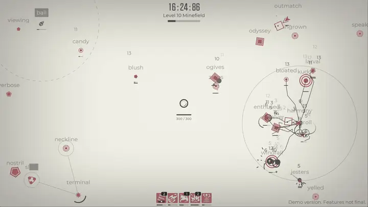 《Glyphica:打字生存》将Roguelike机制与打字技巧相结合,打造出丰富的单人游戏体验。玩家将被置于一个生存环境中,快速精准的打字是击败敌人的关键。游戏场景设定在一个极简主义的竞技场中,玩家需要抵御一波又一波的敌人,并通过打字技能激活指令来控制武器和角色。打字与Roguelike元素的融合为游戏增添了策略深度,玩家必须谨慎选择武器并合理规划角色发展,才能在激烈的战斗中生存下来。