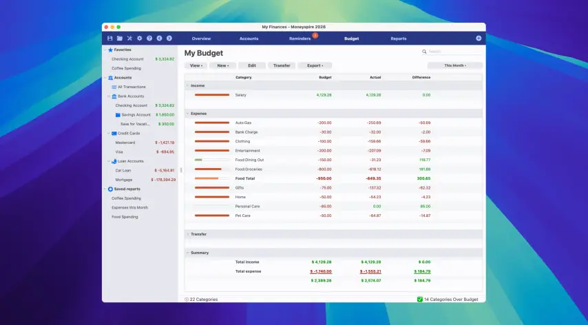 - 收入和支出会计:使用可自定义的类别对交易进行分类。