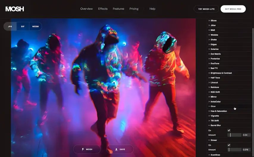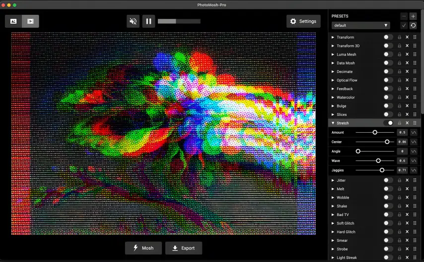 Mosh-Pro 是一款功能齐全的桌面应用程序,带有实时视觉效果混合器,旨在对图像、视频和 GIF 进行无限的创意控制。