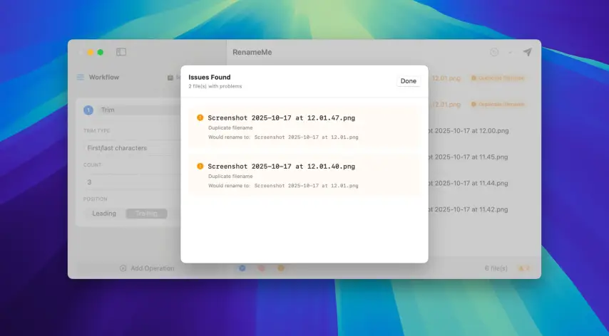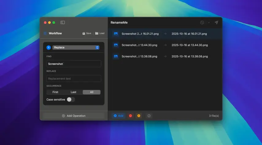 - 可堆叠操作:您可以将多个重命名操作组合到一个工作流程中。例如,替换文本、更改字母大小写、添加前缀和修剪字符——所有操作均可按顺序无缝执行。