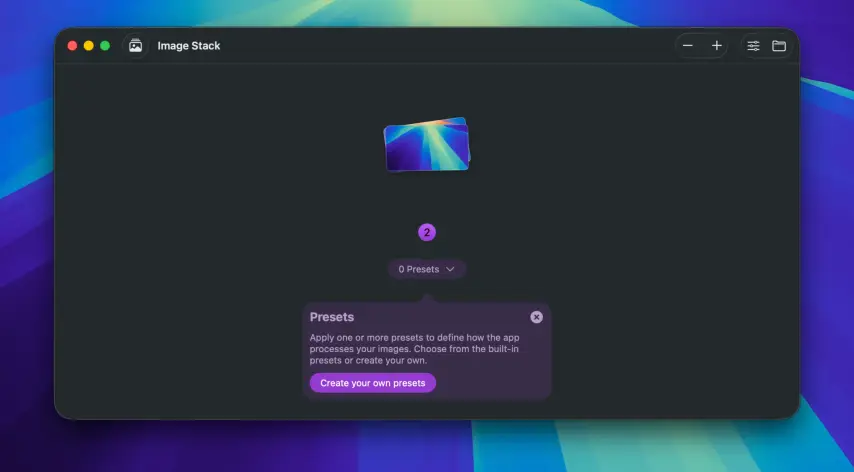 Image Stack 是一款功能强大且直观的批量图像处理应用程序。只需点击几下,即可快速转换、调整大小、重命名以及对一个或多个文件应用各种变换。