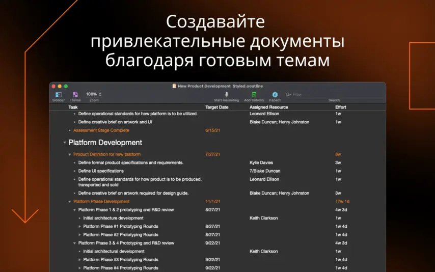 使用大纲将结构放在新的想法和故事上,快速重新排列文档的流程,并构建漂亮的文档以与内置主题共享。但它不仅仅是一个简单的工具,您可以拥有多个列,智能复选框,弹出列表和一个富有风格的丰富的风格系统。