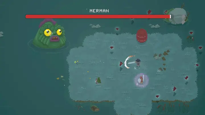 • 永久死亡。一次到达终点的机会。如果英雄死在岛上,他将永远留在那里。在岛上,您可以获得积分,这些积分在死亡后不会过期;它们将用于升级新的英雄和能力。