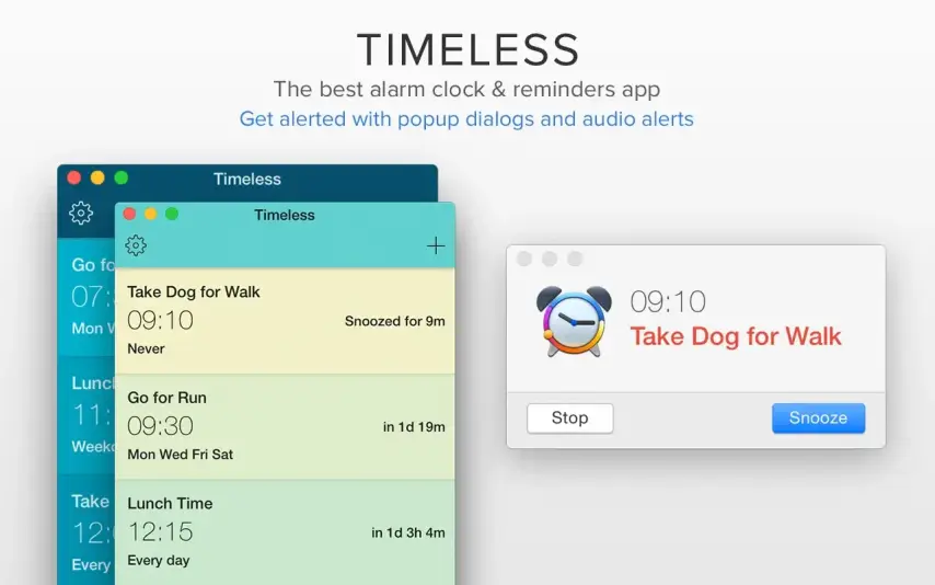 Timeless 是一款适用于 macOS 的优雅闹钟和提醒管理应用程序,它能够适应一天中的时间,并将您的 Mac 变成一款时尚的桌面时钟,并具有智能提醒功能。