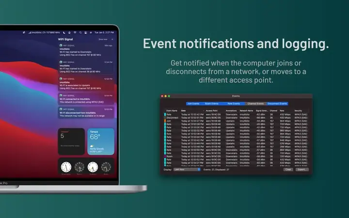 WiFi Signal 是一款可以实时监控 Wi-Fi 连接质量的实用工具:它可以显示信号、噪声、传输速度、信道,并帮助诊断无线网络问题。
